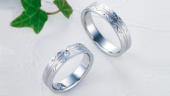 お二人の永遠の愛を、決して枯れることのない常緑樹のツタに託し、デザインが施されているブランド。